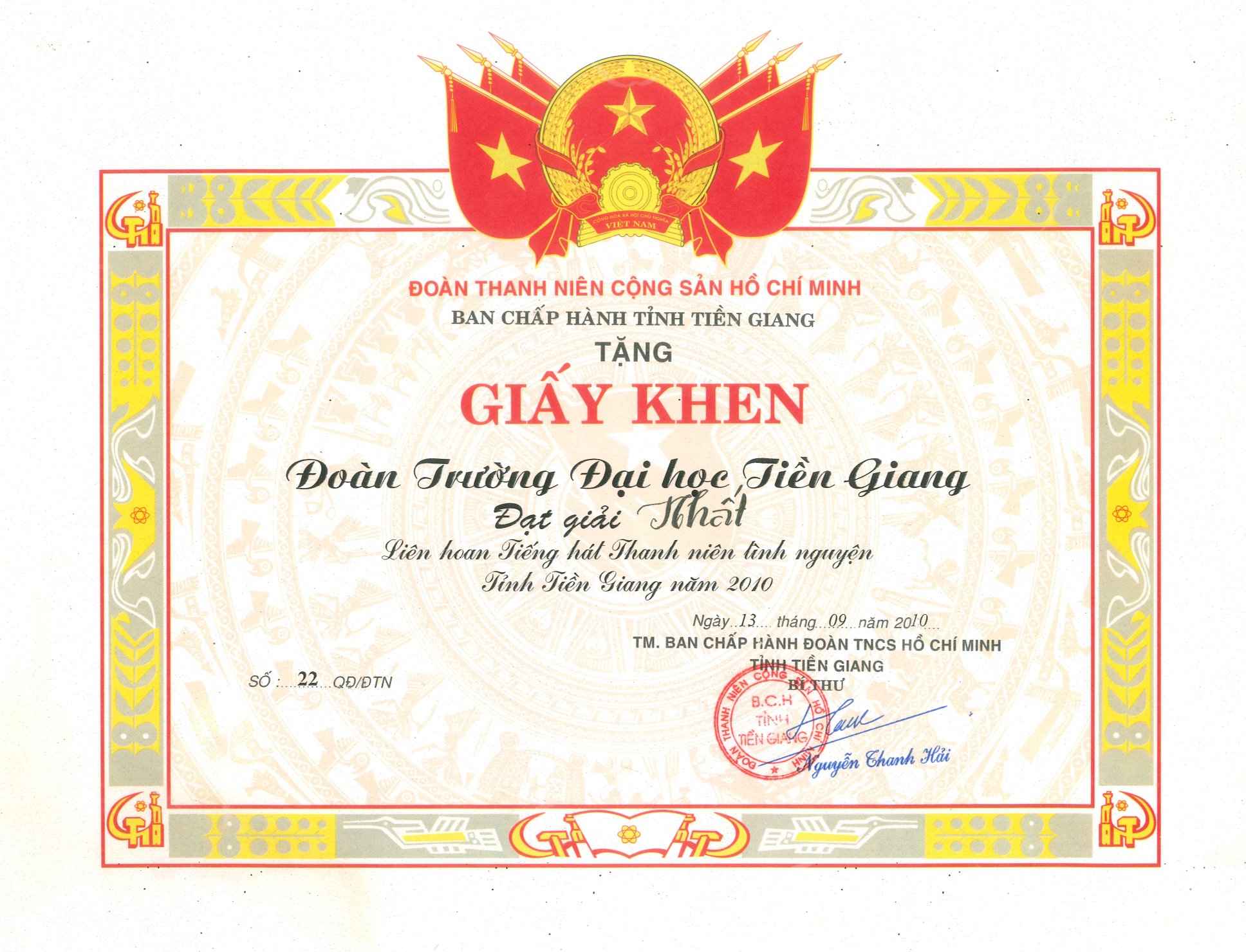 Đạt giải Nhất Liên hoan Tiếng hát Thanh niên tình nguyện tỉnh Tiền Giang năm 2010