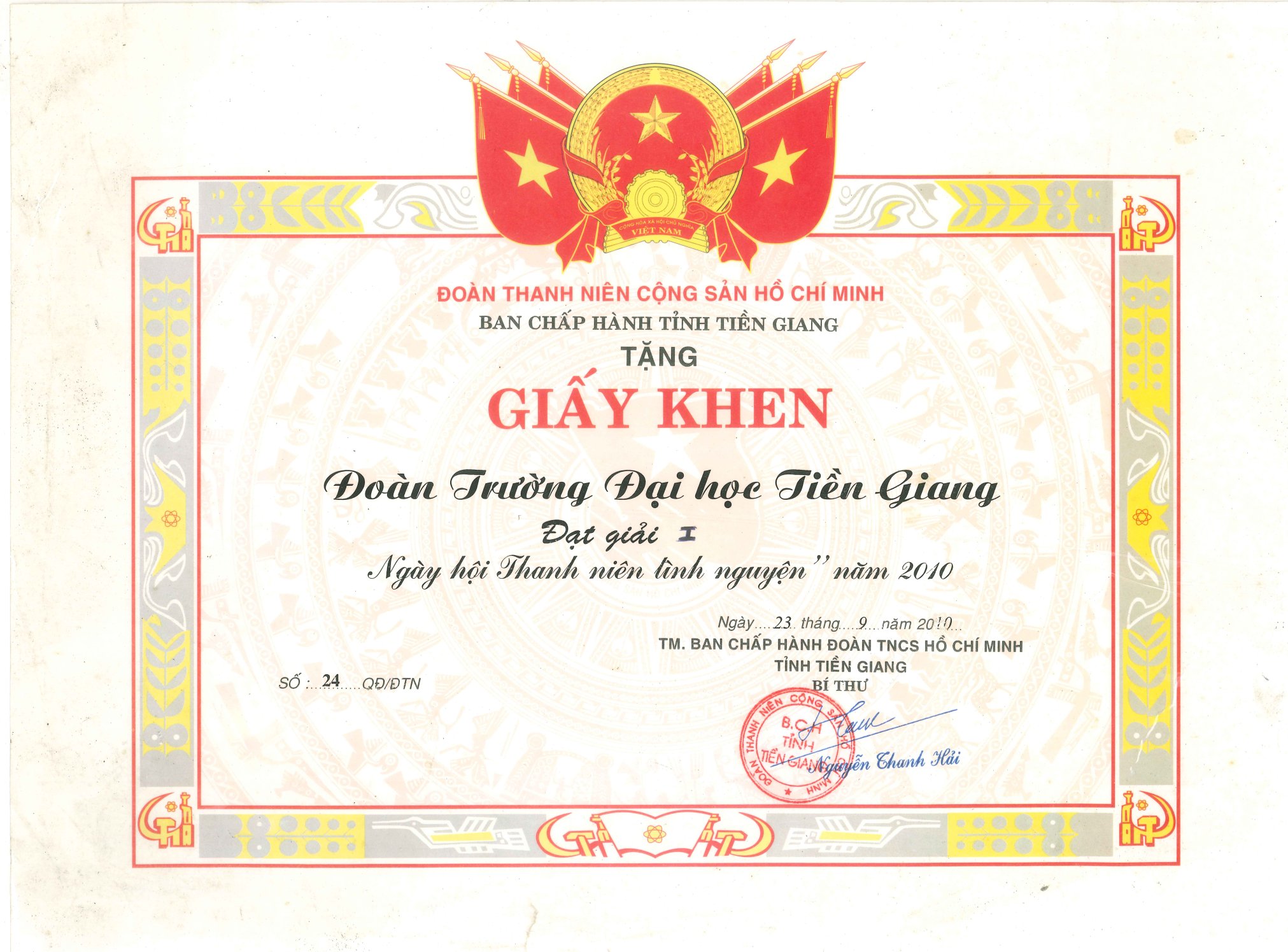 Giấy khen Ban Chấp hành tỉnh Tiền Giang năm 2010