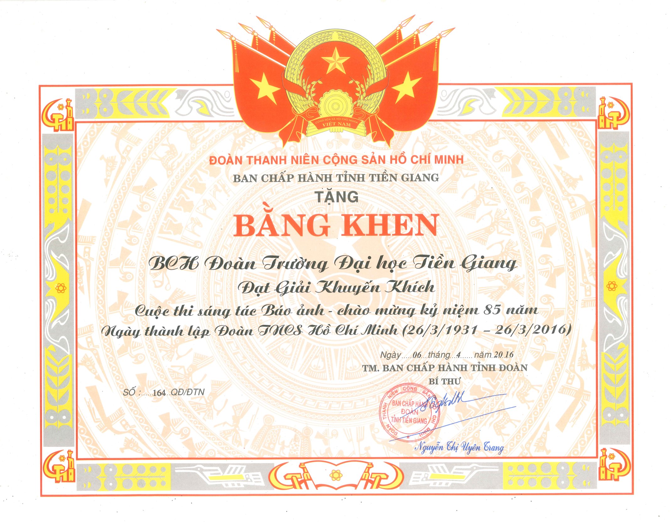 Giấy khen Ban Chấp hành tỉnh Tiền Giang năm 2016