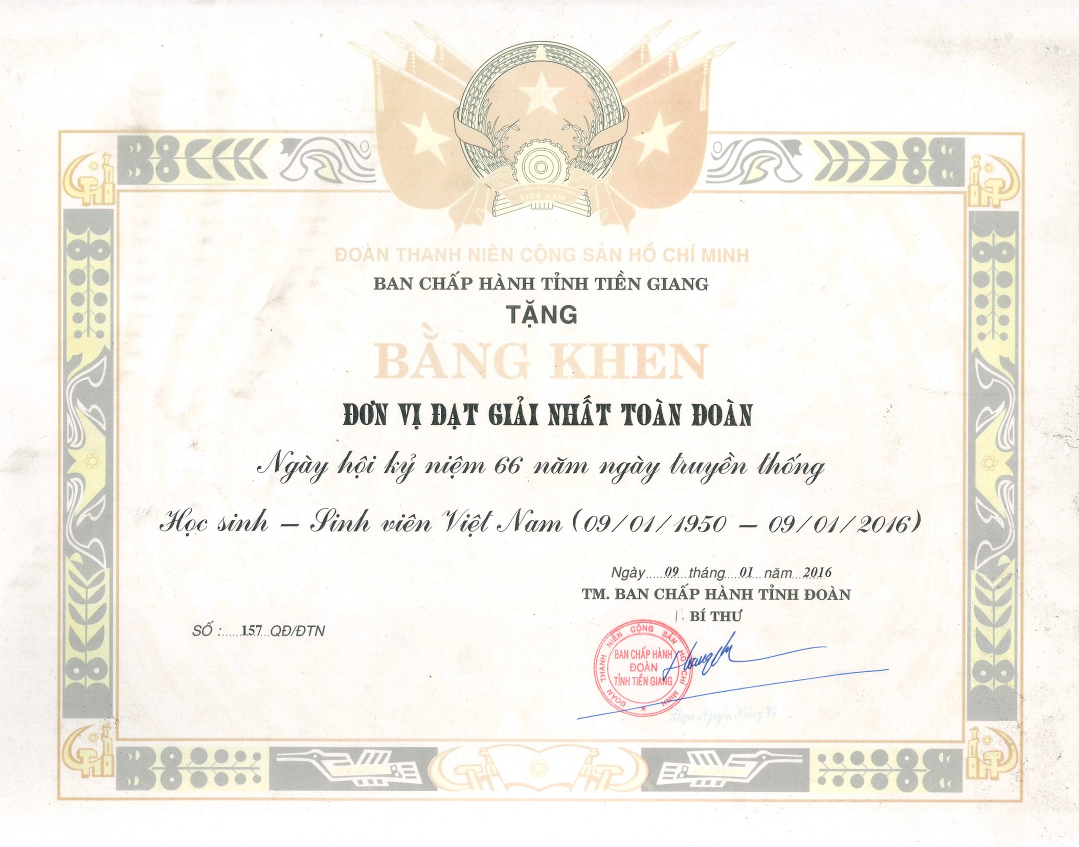 Đơn vị đạt giải Nhất toàn Đoàn Ngày hội kỷ niệm 66 năm ngày truyền thống Học sinh - Sinh viên Việt Nam (09/01/1950 - 09/01/2016)